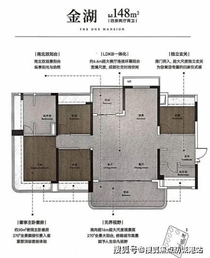 148㎡ 四房两厅两卫:西南向户型,臻品湖景,三代同堂总计四房,南北双阳台。