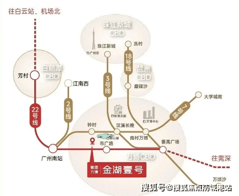 敏捷·万博金湖壹号位于市广路附近,紧邻地铁22号线市广路站,距离仅约800米。该线路时速高达160公里,可快速通达广州南站、白鹅潭商圈、白云机场等多个核心区域。此外,规划中的26号线也将在此交汇,进一步提升了项目的交通便利性。再加上“五纵五横”的立体交通网络,无论是公共交通还是自驾出行都极为便捷。