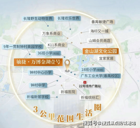 在广州的繁华商圈中,有一个被低估的宝藏——金山湖文化公园。作为番禺区内最大的湖泊公园,其面积达约108.7万平方米,其中水域面积约35万平方米。相比天河公园、越秀东山湖公园和荔湾湖公园,金山湖文化公园不仅在面积上占据明显优势,更凭借其独特的自然景观,为周边居民提供了难得的城市级湖居体验。敏捷地产抓住这一契机,在金山湖畔打造了敏捷·万博金湖壹号项目,旨在为都市人提供一个融合自然美景与现代生活的理想家园。
