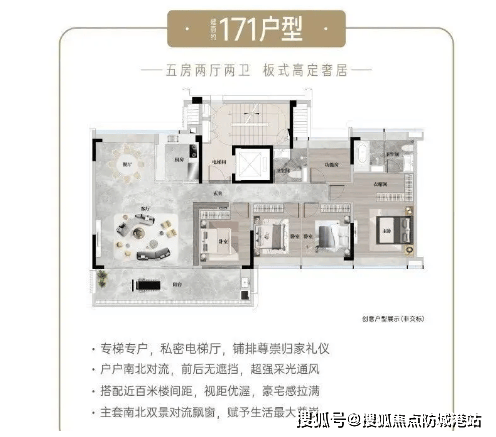 纯板式一字楼:专梯专户,南北对流,采光通风良好。