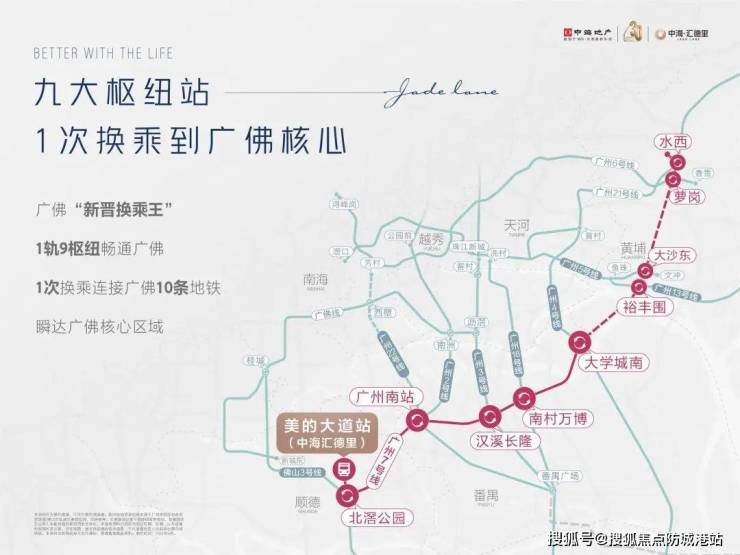 广佛“新晋换乘王”,1轨9枢纽畅通广佛,1次换乘连接广佛10条地铁,瞬达核心区域。