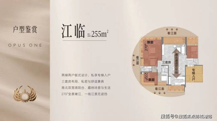 项目主推建筑面积约128-295㎡的纯望江大平层住宅,户型设计注重空间尺度和功能分区。大面宽、短进深的布局最大化江景利用,部分户型可享约700米宽阔江面景观。住宅整体抬高14米,配合立体园林和亲水步道设计,使滨水生活自然融入日常。每套主卧均配备独立衣帽间及卫浴,动静分区明确,充分考虑家庭成员的私密性和舒适性。住宅设计兼顾奢华与实用,为追求高品质生活的家庭提供理想居住选择,每一户都可视作滨水大宅的典范。