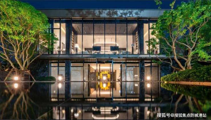 项目精心打造了双重康莱德风酒店大堂,呈现尊享高礼遇的归家体验。东侧大堂门头采用金属与温姆德灰高墙搭配,铺开宽约50米的奢雅府门,极富格调美;大片的玻璃幕墙则让建筑无界融入自然中,让空间变成了光的容器。同时,项目参照京都安缦打造的下沉式庭院,与周边的茂林、叠水深度交织,在水畔林间营造出诗意的休憩场景。