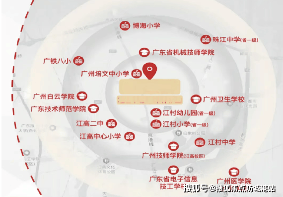 覆盖范围: 以项目为圆心,30分钟交通圈内,覆盖了广州95%以上的核心就业区、商业中心及优质医疗教育资源。