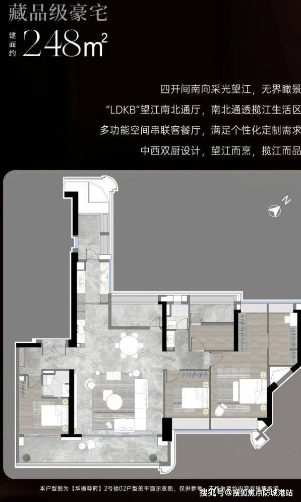 项目户型为 248 - 253 - 330㎡天际大平层,空间宽敞,尺度奢阔。大平层设计让室内空间更加通透,布局合理,满足业主对高品质生活的追求。每个户型都能充分享受周边景观资源,无论是江景还是城市天际线,都能尽收眼底。