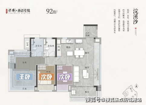 ▶️ 90-94㎡「横厅雅舍」:6米客餐厅开间+270°飘窗,三房两卫容纳全家温馨