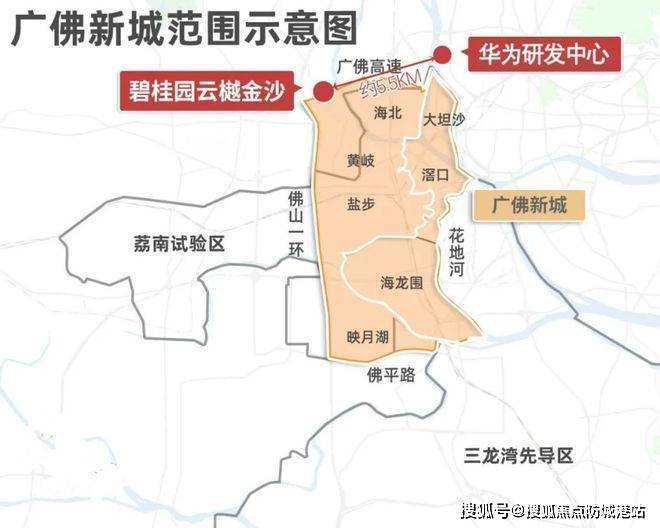 板块发展潜力大。广佛同城化加速,南海荔湾全面升级,环境、交通、产业、空间都在迭代。广州华为研发中心落户白云,距离项目直线仅5.5km,预计2024年投入使用,相当于打造另一个松山湖,未来科创智谷氛围会越来越浓。对于看好广佛融合的买家,这里是典型的“佛山房价享广州配套”选择。