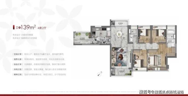 建面139平四房两卫,独立入户花园,大客厅,南北对流双阳台设计,主卧套房带衣帽间,总价550-580万左右。