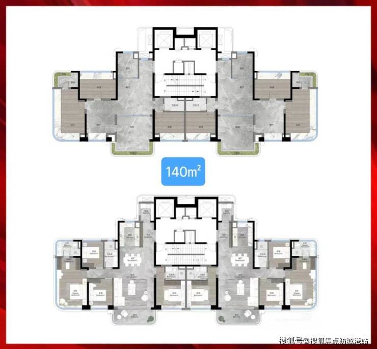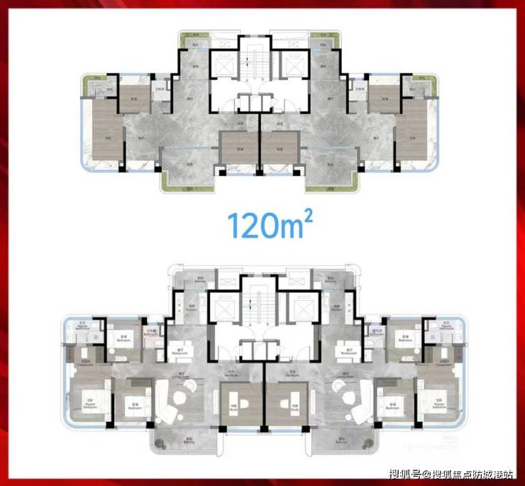 约120㎡四房,主卧270°飘窗,带衣帽间;南北双阳台,一面观景,一面晾晒。