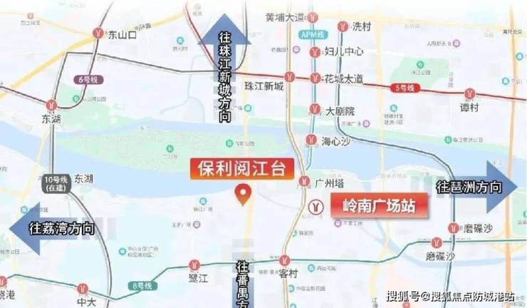保利阅江台的最大亮点在于其优越的地理位置。项目紧邻广州大道中、广州大桥和滨江东路,与珠江直线距离仅约300米。从这里出发,驾车仅需几分钟即可到达珠江新城和琶洲西区,享受城市的核心资源。公共交通也十分便捷,现有3/8/APM三线环绕,未来随着12号线的开通,将更加便利地连接越秀和其他重要区域。