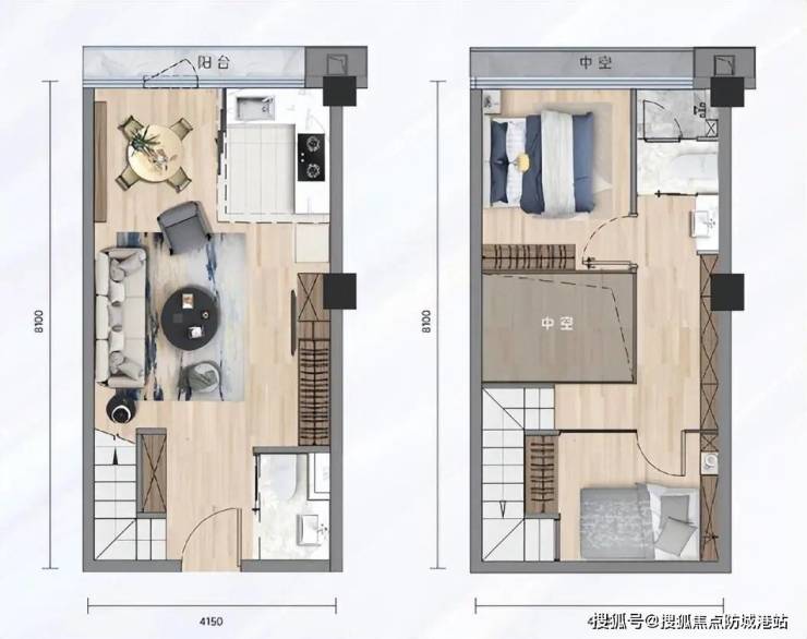 31 方 SOHO:精致小户,宜居宜租:这个户型是单身白领和年轻投资者的首选,户型方正,功能齐全,客厅、卧室、厨房、卫生间一应俱全。4.5 米层高打造双层空间,实现了 “动静分离”,楼下是客厅、厨房,楼上是卧室,全龄分层而享,私密性和舒适度都有保障。4.15 米的阔绰开间,让小小的空间也能有大大的视野,标配的景观阳台,推窗就能瞰山揽湖,视野开阔,日常休闲观景都很合适。对于投资者来说,这个户型总价低,入手门槛低,租赁时针对单身的科创人才,需求巨大,回本快。
