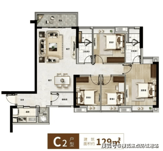 项目在售户型涵盖93㎡至129㎡不等,满足不同家庭结构的需求。所有户型均采用两梯四户设计,得房率为82%。特别值得注意的是,部分户型如110㎡户型拥有较大的阳台面积,提高了居住舒适度。同时,作为精装现房,佳大瑞园提供了即时入住的便利性,避免了期房等待的不确定性。