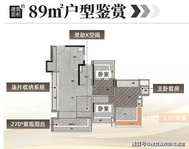 拿88平左右的入门户型来说,四开间朝南,客厅开间做到约5.2米,通风采光效果出色。主卧带270度环幕景观飘窗,小空间也能做出主卧的仪式感。最小的房间也能轻松放下一张床、床头柜和衣柜,实现三边下床。走廊和转角位置通过S墙藏冰箱、连续墙面预留收纳柜等方式,榨干每一寸可用空间。客厅全飘窗设计,后期家庭有需要还能灵活加一间房。