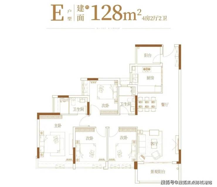 95㎡的三房,98㎡两种户型的三房,99㎡的三房,以及128㎡的四房。