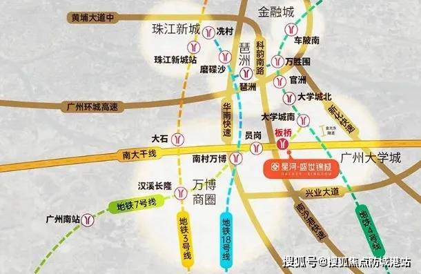 公共交通方面,小区距离地铁7号线板桥站步行只需要500米。这点是要优于越秀星汇锦城的。板桥站出发,到达南村万博站就两站。坐一站到达大学城南,又可以换乘4号线,十分便利。