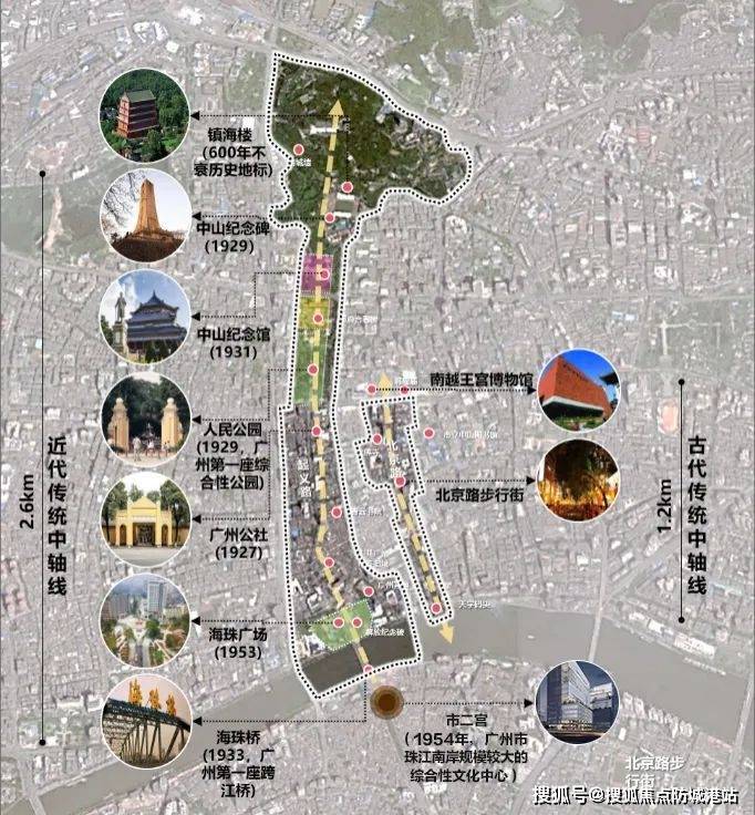 广州第一中轴,北起越秀山,跨过珠江抵达南岸,连接着广州的政治、经济和文化中心,浓缩广州2200多年来从未偏移、从未断代的人文历史底蕴,是千年广府中轴正脉。