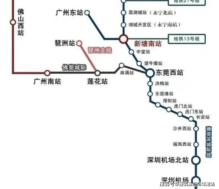 新白广城轨(在建):1站到白云机场,南向连接东莞、深圳。