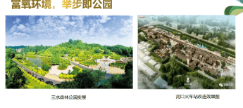 项目外部则比邻国家 4A 级三水森林公园,还有凤凰公园、文塔公园等生态资源环绕,三水森林公园内有大面积绿植覆盖和丰富的休闲设施,是周末家庭出游、散步吸氧的好去处,高绿化的内外环境,让业主能时刻享受生态宜居的生活氛围。