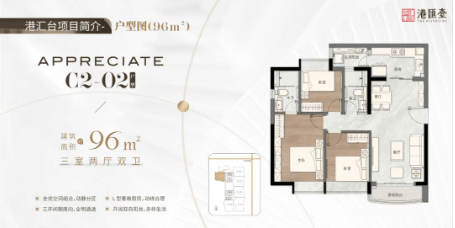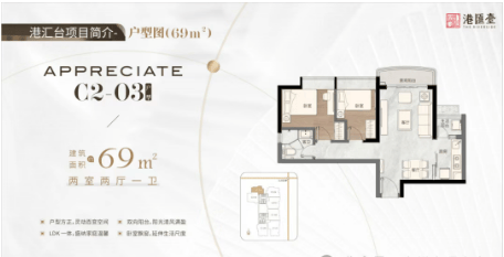 汉国置业·港汇台主推69-144平方米的二房至四房户型,涵盖多种面积段,满足不同家庭的需求: