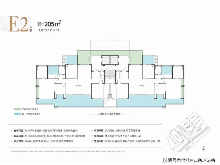 比如建面约205平4房(E2户型),不仅拥有一个约36平的阔绰阳台,还有一个约32平的专属庭院,可以在大平层实现庭院生活理想。