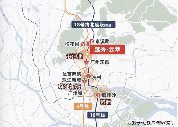 市级商圈: 依托18号线,2站地铁(约10分钟)直达天河路商圈(天河城、天环广场、正佳广场、太古汇)。实测数据显示,周末从项目乘坐地铁前往天河购物休闲,全程耗时在30分钟以内,都会繁华触手可及。