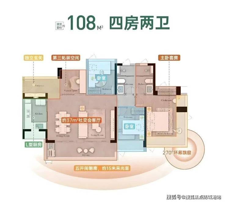3. 108㎡四房两卫:改善首选,三代同堂无压力