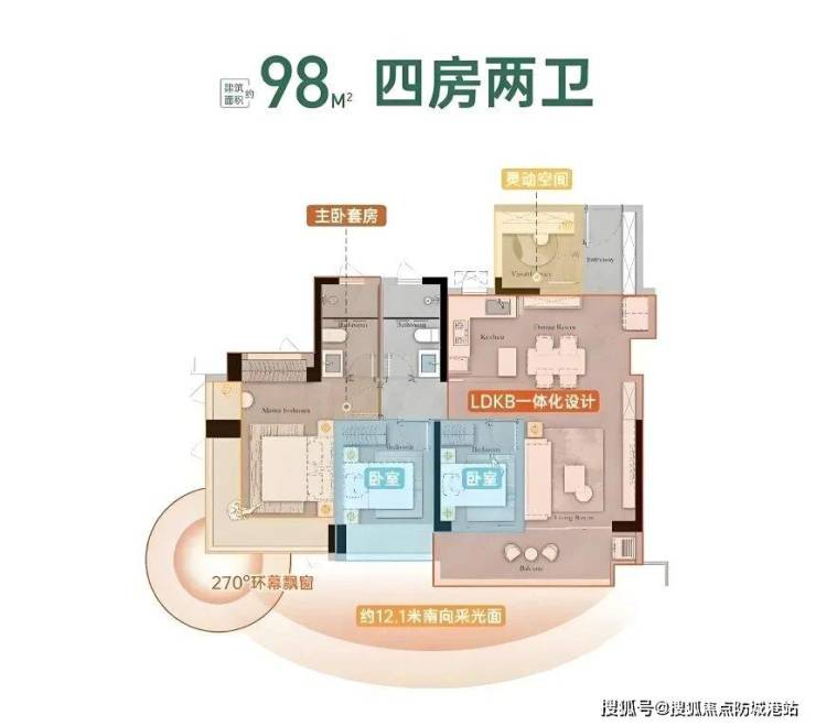 2. 98㎡四房两卫:多孩家庭福音,空间灵活多变