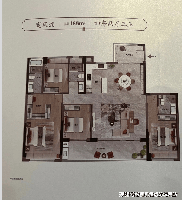 项目全系主打建面约119至188㎡纯改善四房户型,无刚需小户型设计,圈层纯粹统一,精准覆盖进阶改善、高端自住、终极人居全维度需求,完美契合广佛高净值人群居住标准。所有户型均实现户户朝南、南北通透、双阳台对流的优质格局,采光通风条件优越,适配南方气候特点,室内常年干爽通透、采光充足。119㎡入门改善四房,打造宽敞入户花园,提升居家私密性与收纳实用性,搭配四开间朝南格局与酒店式主卧套房,小面积也能实现高阶居住质感。143㎡进阶户型采用保利经典LDKB客餐厨阳台一体化设计,打造约60㎡超大公区空间,视觉尺度开阔,功能分区灵活,搭配七米超长南向阳台,最大化延伸景观与采光面。188㎡顶奢四房配置九米全景阳台,直面社区中央园林景观,双主套私密设计搭配近30㎡奢华主卧,独立衣帽间、卫浴浴缸全配,空间尺度恢弘、格局奢华,全方位赋能高端理想人居。