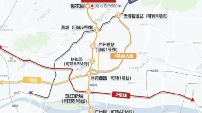 广垦·天河1号地处天河区怡新路,距离地铁3号线梅花园站B出口约400米,两站直达广州东站枢纽,五站畅达珠江新城CBD。此外,项目西侧紧邻广州大道主干线,东向2公里快速衔接沙太路立体交通网,无缝对接环城高速、内环路及华南快速等主要道路,实现了半小时通达全城的便捷交通网络。