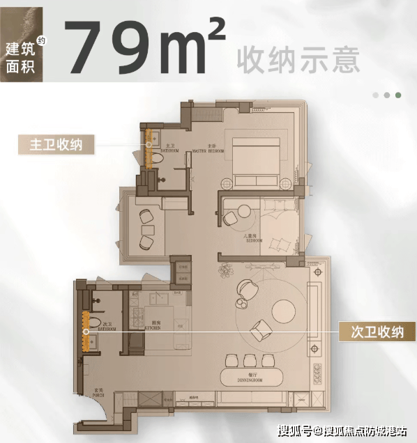 建面约78㎡三房两卫,实际使用面积约90-95㎡,超越隔壁万科城市之光99㎡三房;