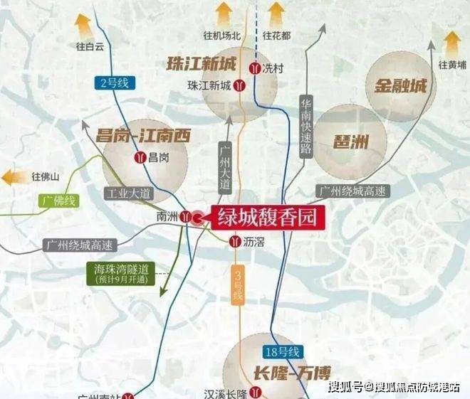 交通方面,这个项目堪称双地铁上盖的典范。家门口就是2号线和广佛线换乘的南洲站,C1出口步行仅百米距离。未来地库将直通地铁站,实现全程风雨无阻的归家体验。从这里出发,3站就能到客村,5站直达珠江新城,7站抵达琶洲,8站可达万博或金融城,通勤效率极高。广佛线还能快速连接佛山区域。自驾同样便利,项目位于广州新中轴南延线上,周边有广州大道南、环城高速等主干道,去珠江新城不到10公里,琶洲12公里左右,半小时内基本搞定。海珠湾隧道建成后,到广州南站也只需20分钟左右,立体交通网络让日常出行变得轻松自在。
