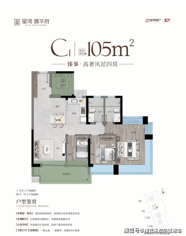 值得一提的是,这是星河进入广州19年来,在黄埔打造的首个大型综合住区,意义非凡。项目总建面达37.66万㎡,规划17栋32层住宅,提供约4500套高品质居所,主力户型涵盖85至125㎡三至四房,精准匹配首次置业、二胎家庭及改善型客群的多元需求。