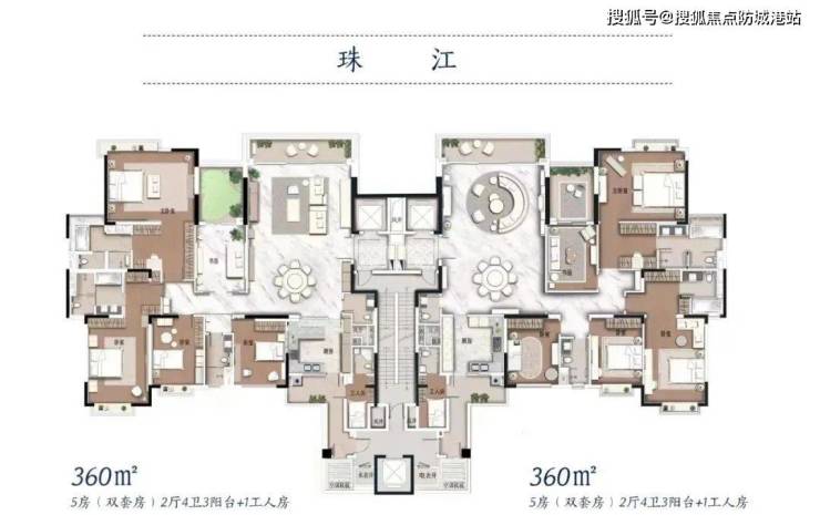 咱们再来看看户型,360平的户型包括了两种类型:现代雅奢户型A和美学简约户型B。