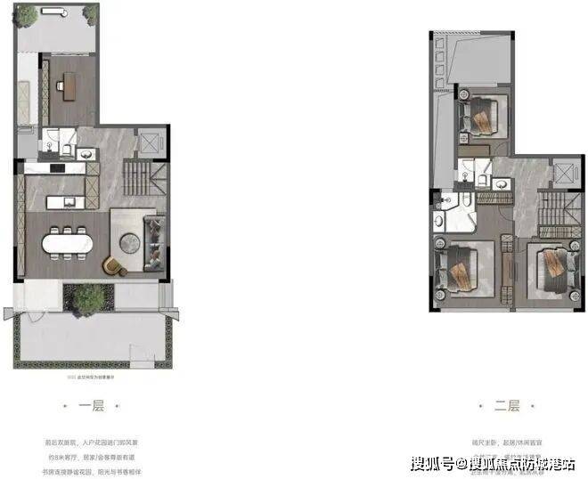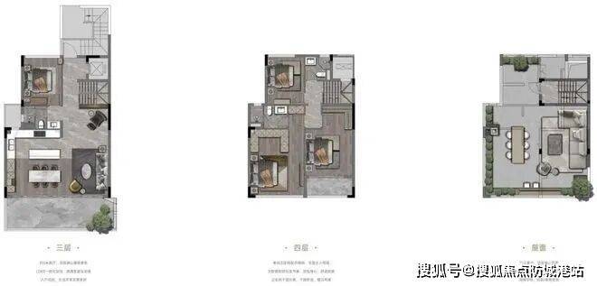 上叠为整栋楼的3-5层,3层主要设置次卧、公卫、客饭厅、厨房等,可以安排长辈居住,避免上下楼不便。
