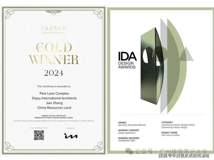 产品殊荣:项目被克而瑞评选为“2023年全国十大高端作品”,荣获2023美国IDA国际设计大奖等国际奖项、2024法国设计大奖金奖,入选广州市新型智慧城市和“新城建”十大标杆项目、中指研究院悦系标杆项目。