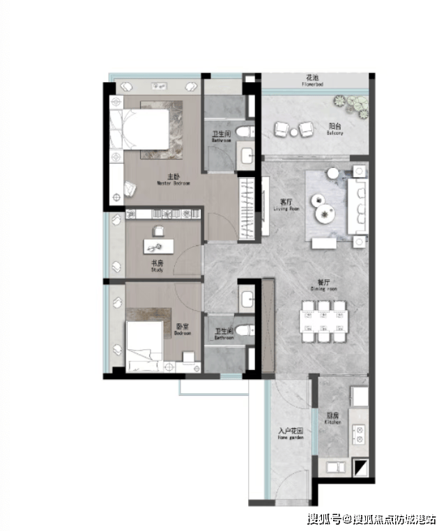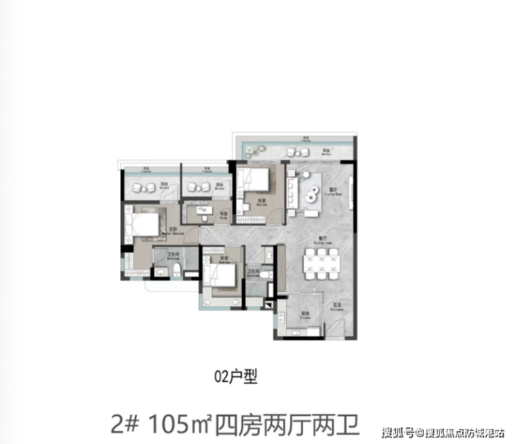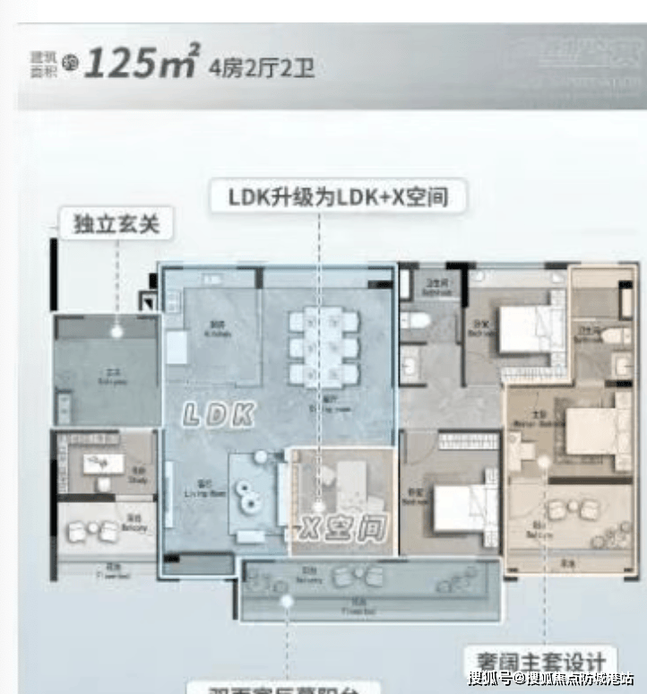 - 四开间朝南 | 6米大阳台 | 主卧独立衣帽间+干湿分离卫浴;