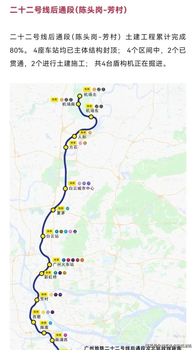 项目构建起高效立体交通体系,地铁优势尤为突出。夏茅站(约20米)作为22号线与8号线支线换乘站,22号线时速160公里,贯穿7大枢纽,16处换乘点无缝连接全城,5站直达珠江新城;8号线支线串联越秀、花都,衔接广州北站与白云棠溪TOD。自驾方面,机场路、华南快速、机场高速环绕,快速抵达白云新城、荔湾、越秀及机场。多维交通网络让通勤高效便捷,工作日乘地铁轻松往返CBD,周末自驾或地铁出游,无缝切换工作与生活。这种交通优势重构城市生活半径,让业主畅享“地铁一响,黄金万两”的便捷与价值。