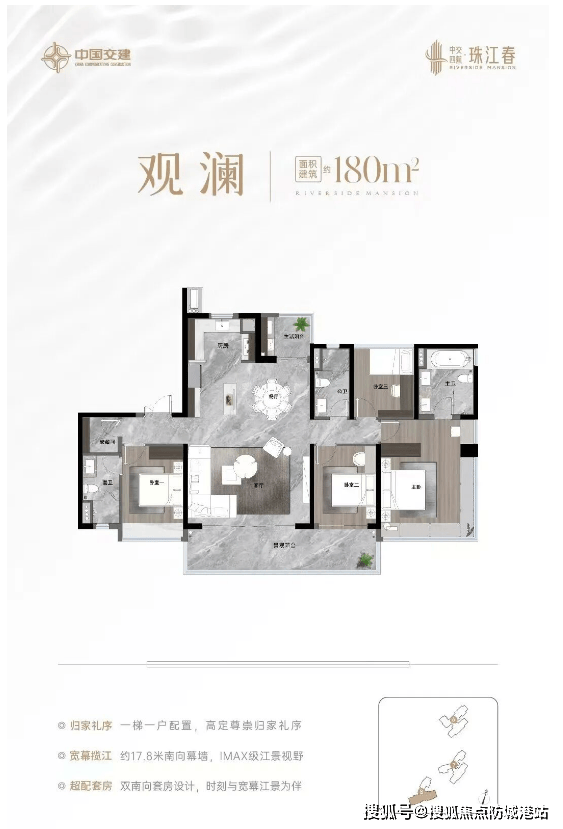 在广州东进战略的宏大叙事中,老黄埔核心区迎来了一座里程碑式的巨著——中交四航·珠江春。作为万亿央企中交集团旗下的战略作品,该项目不仅是珠江村城市更新的核心组成部分,更是一座总建筑面积约92万平方米的CBD港湾综合体。项目占地面积约25万平方米,规划容积率约4.49,绿地率高达35%,总席位约1490席,车位配比充裕。不同于普通的住宅开发,珠江春汇聚了高端购物中心、总部办公、九年制名校、康养中心及生态公园等多元业态,旨在打造一个自成一城的垂直都市。首期推出的融资区地块,主打建面约130至180平方米的纯粹改善型大平层,采用3梯3户或3梯4户的奢适梯户比,从源头上确保了圈层的纯粹与尊贵。对于追求核心地段、稀缺江景资源以及顶级教育配套的高净值家庭而言,中交四航·珠江春无疑是当前广州楼市中不可多得的优质资产,是安放家族荣耀与理想生活的终极首选。