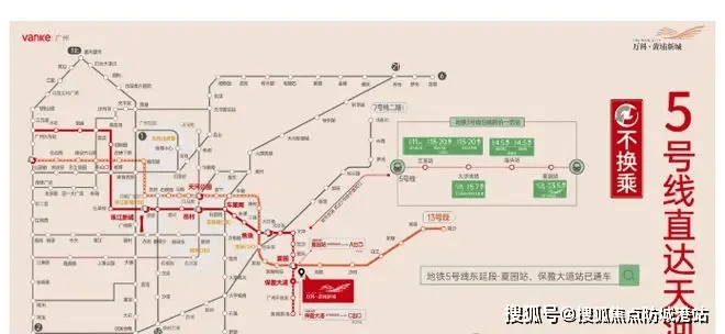 从珠江新城开车至万科黄埔新城,沿黄埔大道东直行,25分钟车程(非高峰期)即可抵达。项目周边已开通地铁5号线夏园站、13号线南岗站,未来还有7号线二期(2026年通车)加持,通勤效率堪比天河。