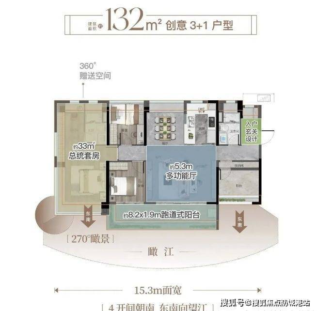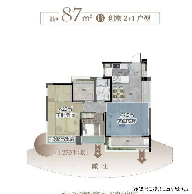户型设计亮点满满,得房率超高。87 - 134 平的三 / 四房户型,全部朝东南或西南。87A 平三房两卫,四开间朝南,南北通透,约 3.8 米奢阔横厅。87B 平三房两卫,罕有约 4.9 米宽幕客厅,110% 使用空间。112 平四房两卫,性价比高,约 5.2 米方厅设计,三阳台赠送。134 平四房两卫,大阳台,主卧宽敞,南望江北瞰园。每个户型通过提升赠送空间,实现超高实用率,满足不同家庭需求。