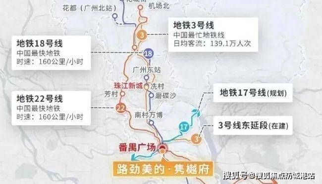 交通十分便捷。距离地铁站 3 号线番禺广场站约 800 - 900 米,这里 4 条地铁交汇,18 号线、22 号线、3 号线及规划中的 17 号线,去珠江新城、琶洲等核心区域直达。自驾方面,番禺大道、南沙港快速等线路,让出行选择多样,无论是上班通勤还是外出游玩,都能轻松畅达。