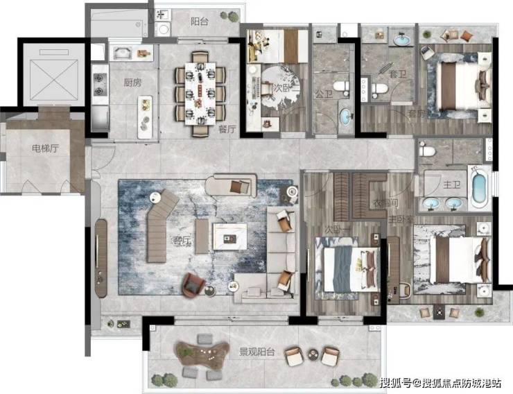 ◇大方厅/中西厨岛台设计/双主套设计奢阔空间尺度,全城罕见约8.3米南向观景阳台,270°一线广角山景大宅,赋予生活无限想象,定义城市进阶圈层。