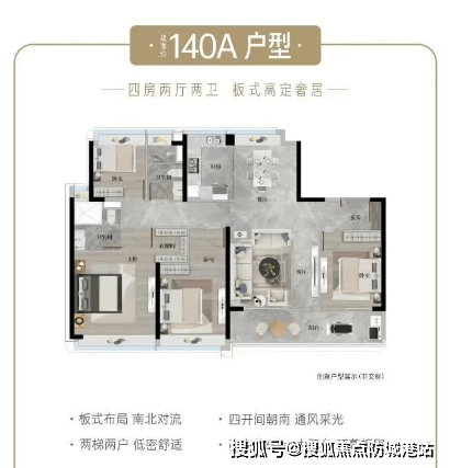 140a㎡高定四房:南北对流,全屋精装,酒店式星级居所享受。