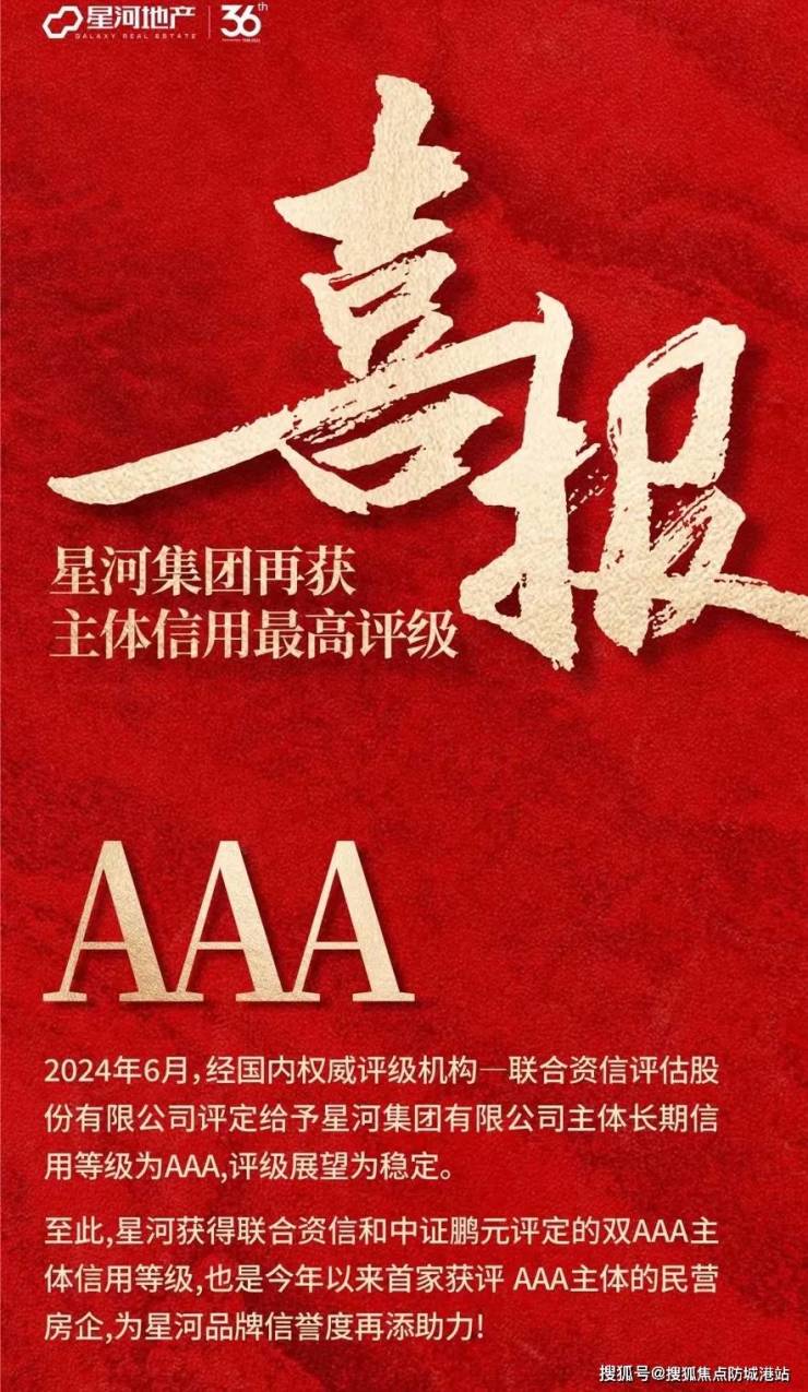 星河地产,中国房地产百强企业,35年深耕粤港澳大湾区,累计开发项目超150个,服务业主超30万户。2025年,集团连续5年蝉联“中国房地产百强企业”,信用评级AAA,资金实力雄厚,交付无忧。