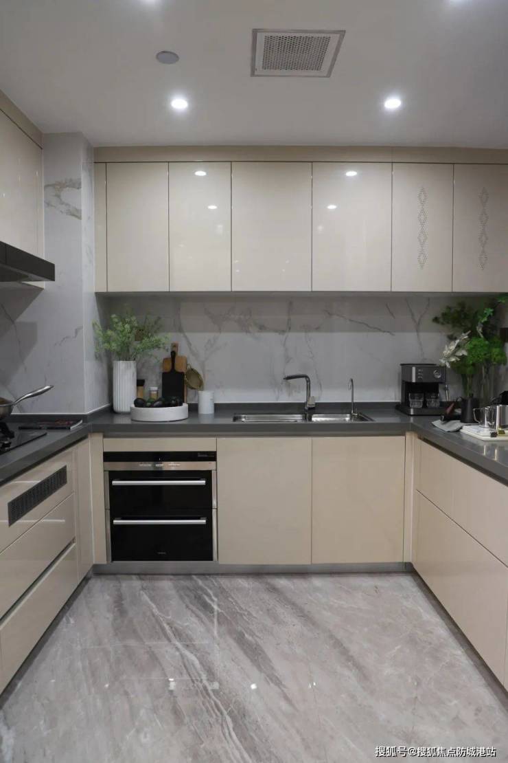 配色方案:采用米色作为主色调,搭配灰色地砖,形成简约舒适的视觉效果。