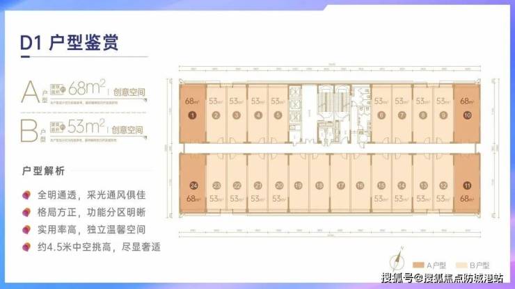 35-68㎡创意空间:4.5米中空挑高,实用率超150%,适合单身贵族或投资出租;