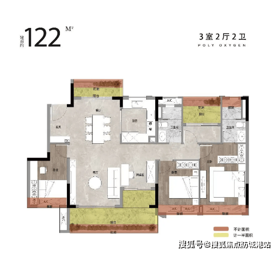 约82㎡南向三房:6米大阳台+主卧双飘窗+南北通透,景观与舒适兼具;