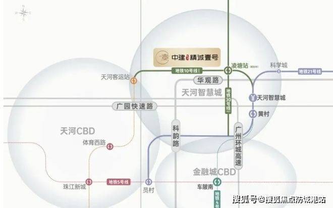 这交通啊,那叫一个四通八达。有 2 条主干道,科韵路和华观路,沿着这俩路,珠江新城、金融城、智慧城这黄金三角圈随便串。3 条地铁线,距 21 号线智慧城站约 1.5km,10/30 号线 (规划) 交汇站华观站离得更近,就约 600m。还有 3 条高速,华南快速干线、广园快速、广州环城高速,一脚油门,广州中心区轻松到。不管是上班通勤,还是出门游玩,都方便得很。