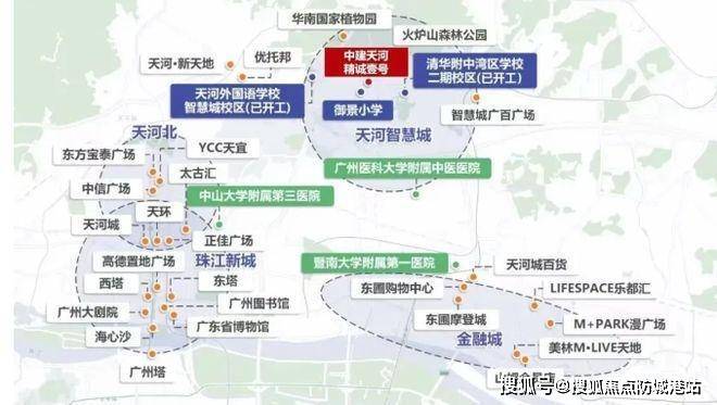 周边商圈配套相当成熟。2km 范围内就能享受到 7.5 万㎡的智慧城广百广场,平时逛个街、吃个饭啥的都方便。要是想去更大的商圈,太古汇、K11、IGC、天河城这些大型商圈,开车一会儿也就到了。医疗资源也丰富,周边有南方医科大学第三附属医院、广州复大肿瘤医院、广州市天河区中医医院等 3 大甲级医院,为家人的健康保驾护航。