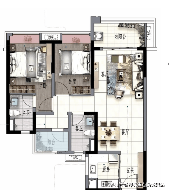 南向约99㎡3+1房2卫:户型升级优化,拥有灵动入户空间,方便业主放置鞋柜、收纳物品,提升归家仪式感。南向约6米阳台,能够尽揽自然景观,让业主在室内即可享受优质的视野体验。主卧采用套房设计,配备独立卫生间,保证了业主的私密生活,提升居住舒适度。